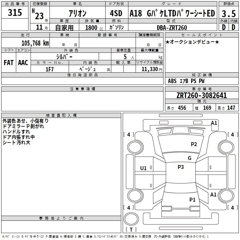TOYOTA ALLION - лот 315