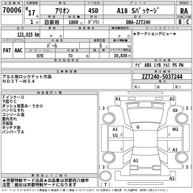 TOYOTA ALLION - лот 70006