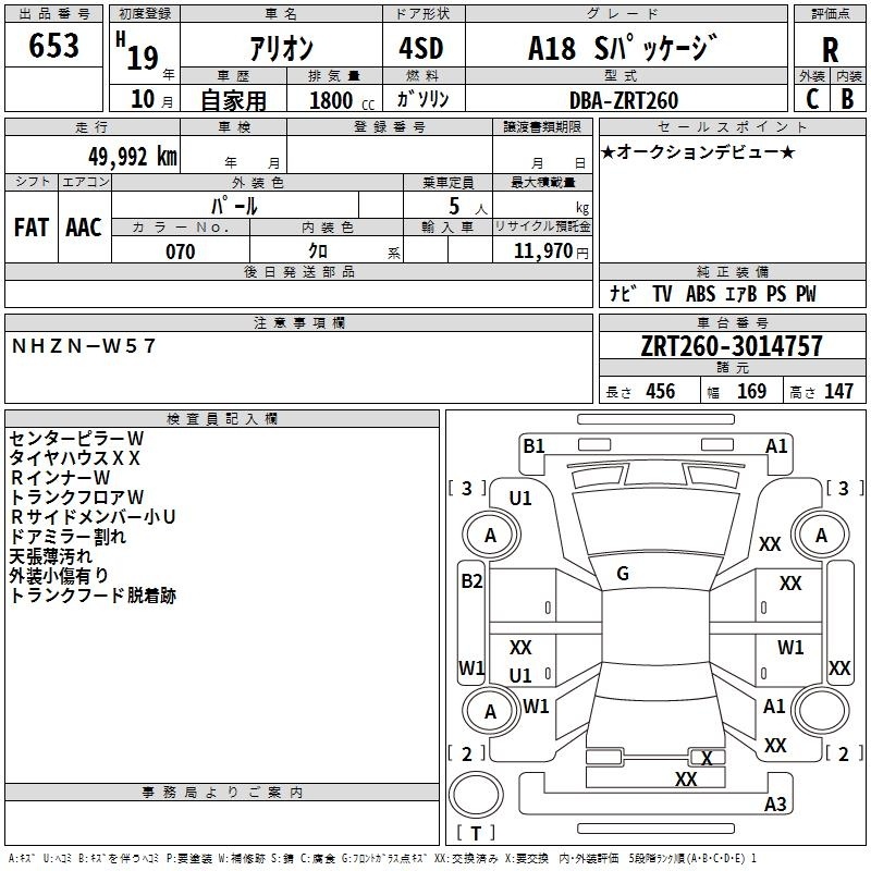 TOYOTA ALLION - лот 653