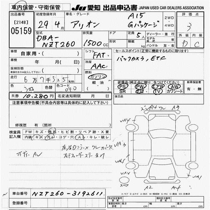 TOYOTA ALLION - лот 5159