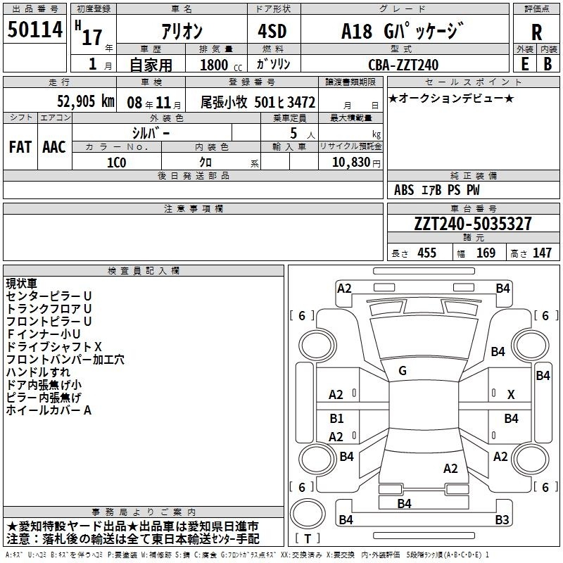 TOYOTA ALLION - лот 50114