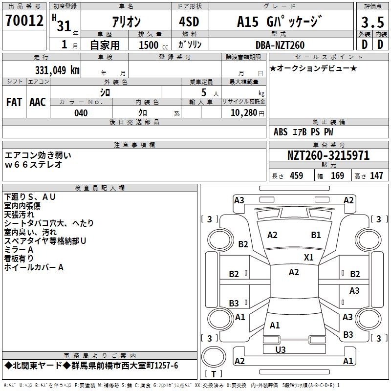 TOYOTA ALLION - лот 70012