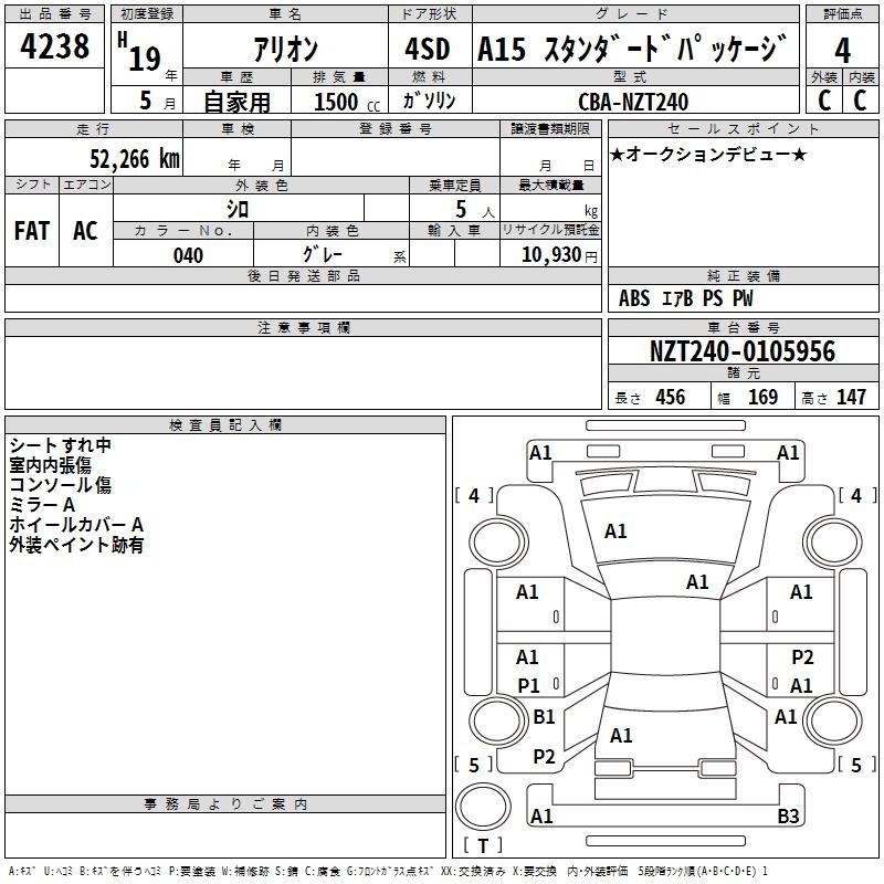 TOYOTA ALLION - лот 4238