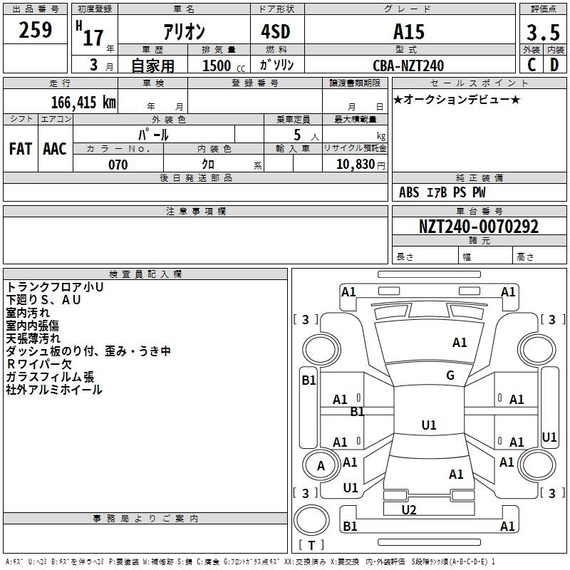 TOYOTA ALLION - лот 259