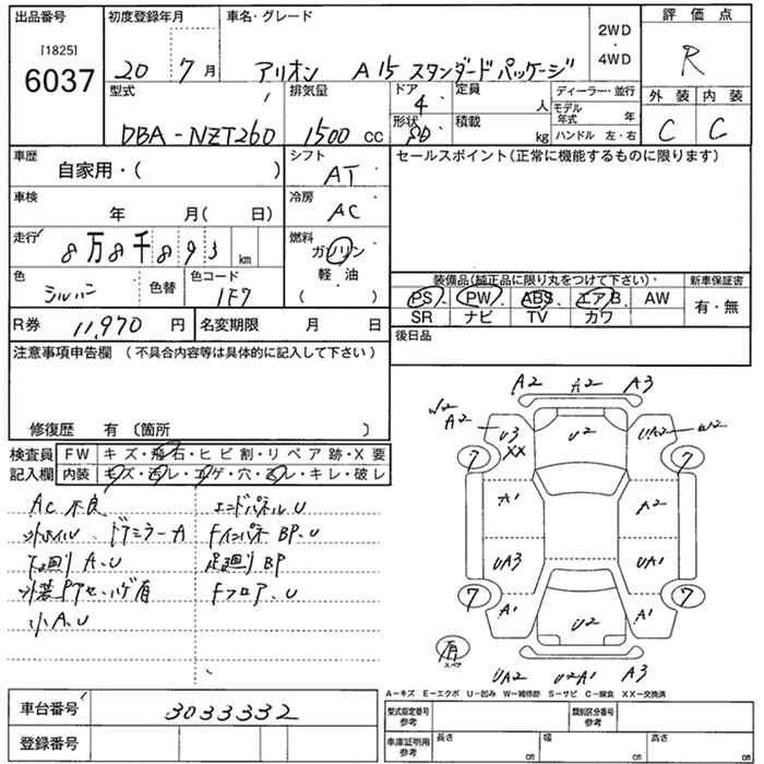 TOYOTA ALLION - лот 6037