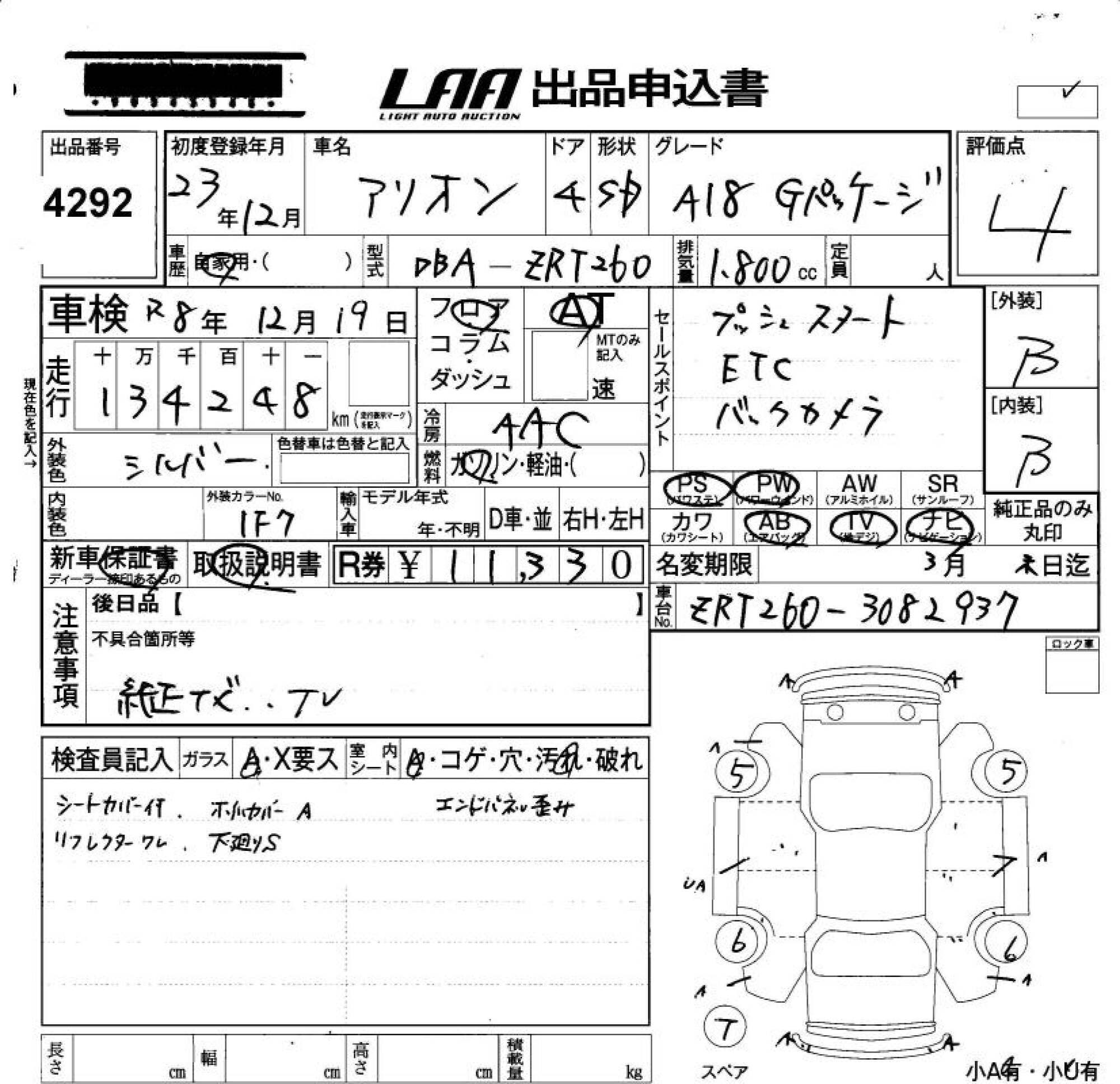 TOYOTA ALLION - лот 4292