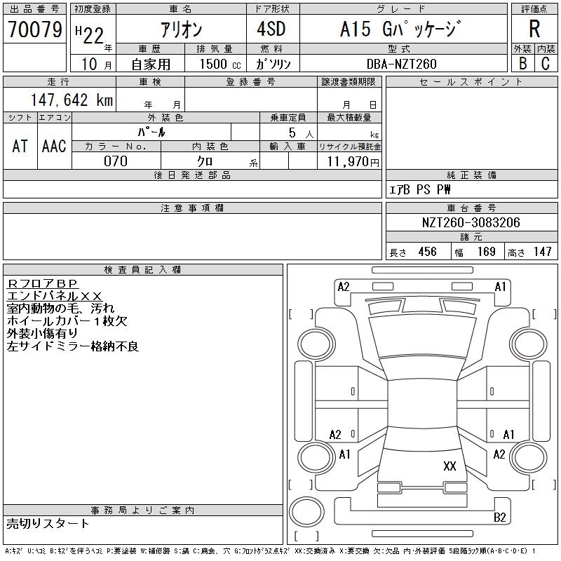 TOYOTA ALLION A15 G PACKAGE - лот 70079