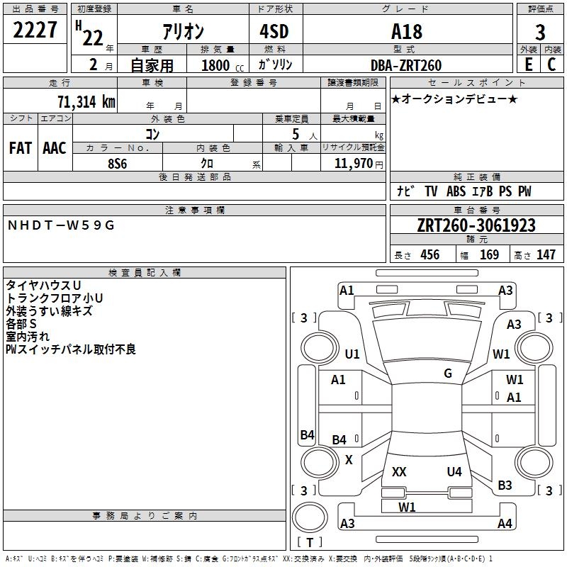 TOYOTA ALLION A18 - лот 2227