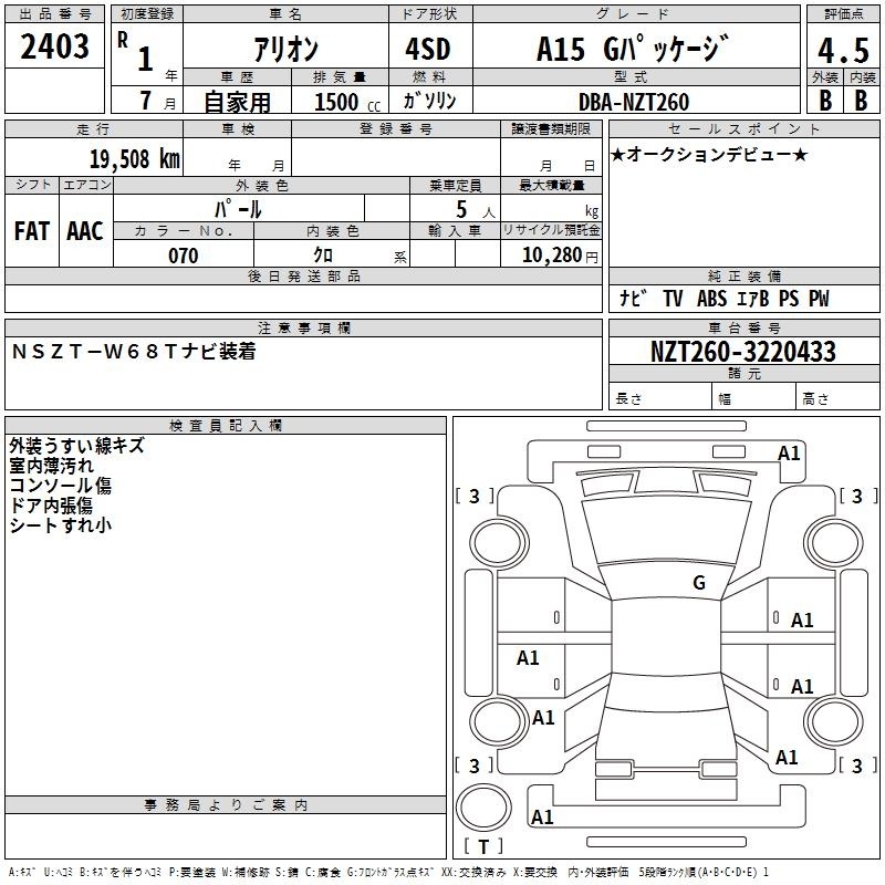 TOYOTA ALLION - лот 2403