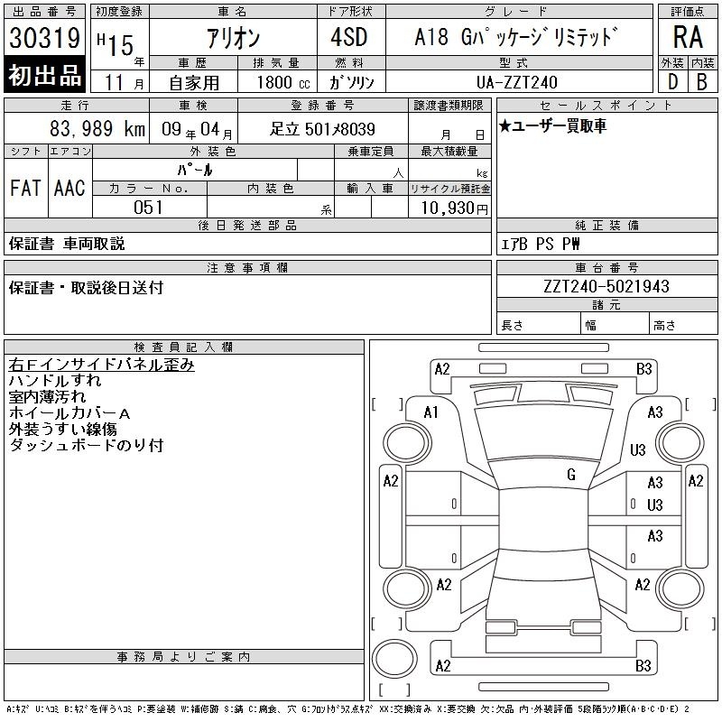 TOYOTA ALLION - лот 30319