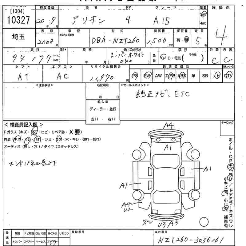 TOYOTA ALLION A15 - лот 10327