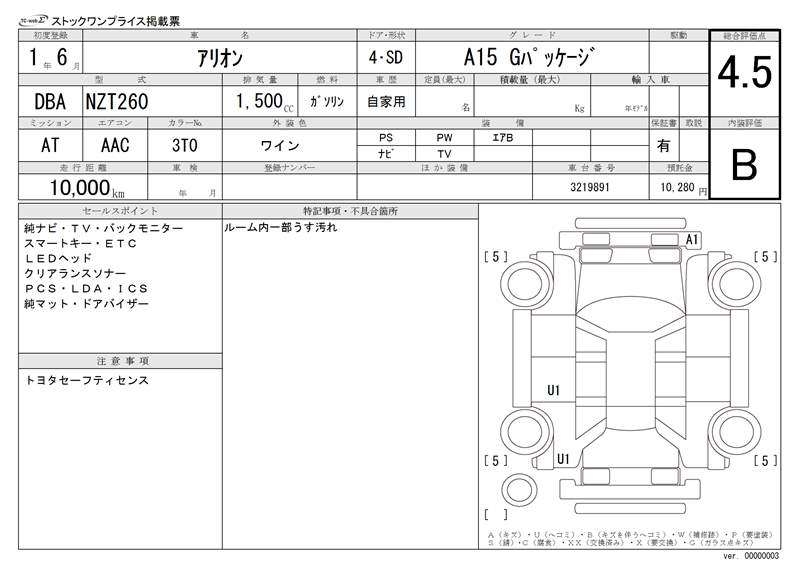 TOYOTA ALLION - лот 12191