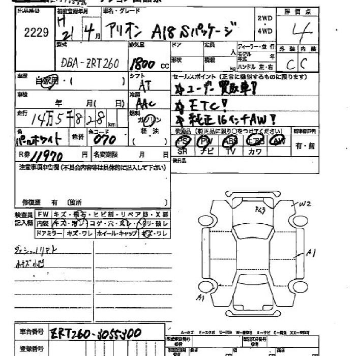 TOYOTA ALLION - лот 2229