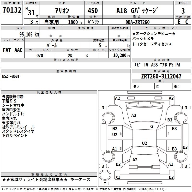 TOYOTA ALLION - лот 70132