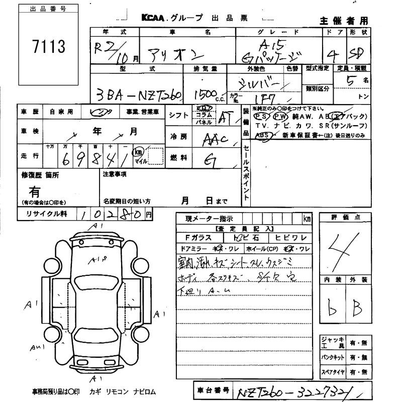 TOYOTA ALLION - лот 7113
