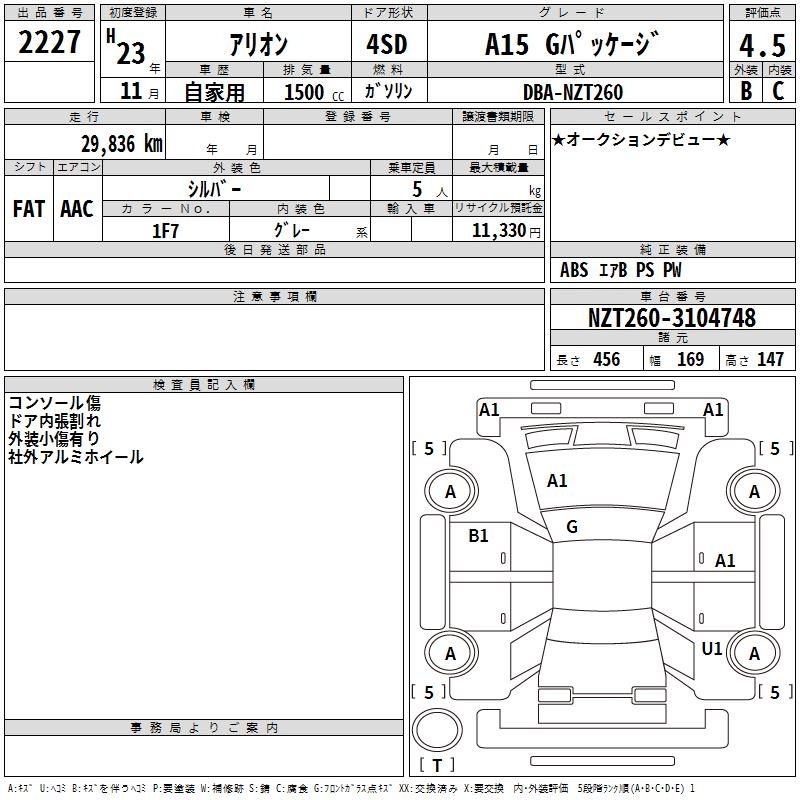TOYOTA ALLION - лот 2227