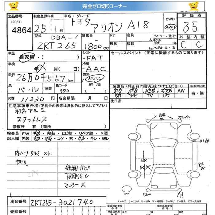 TOYOTA ALLION 4WD A18 - лот 4864