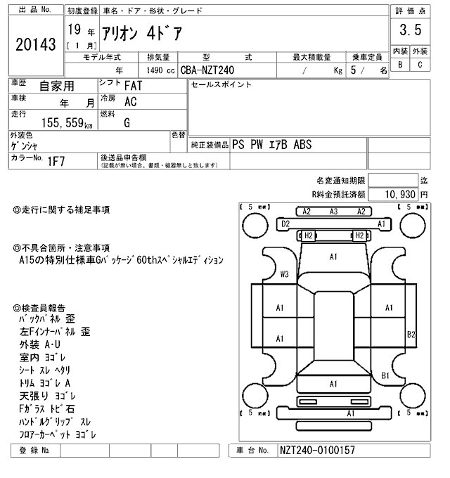 TOYOTA ALLION - лот 20143