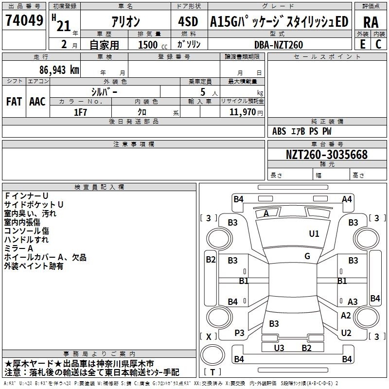 TOYOTA ALLION - лот 74049