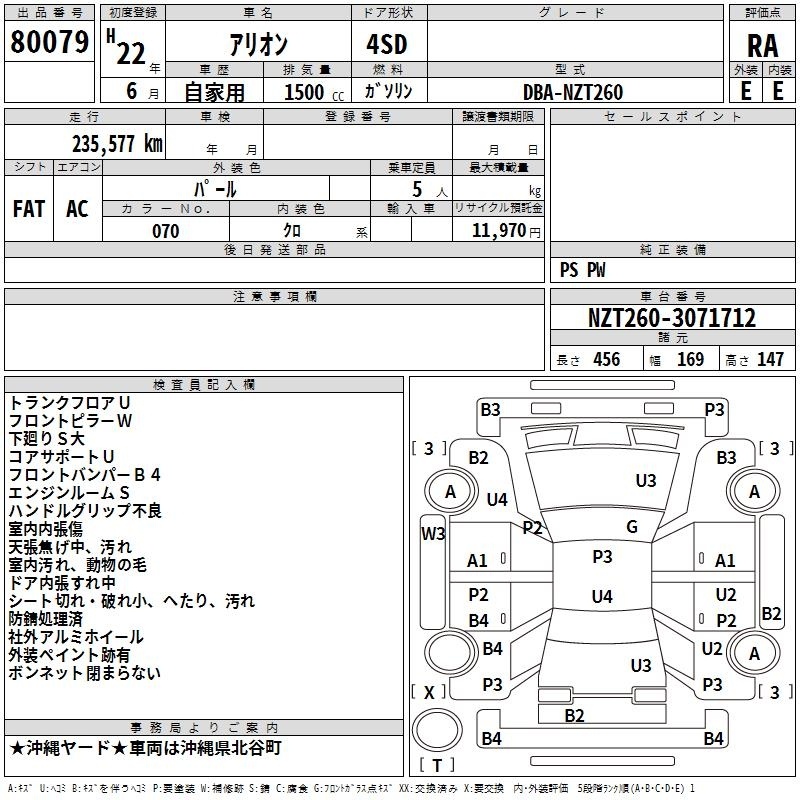 TOYOTA ALLION - лот 80079