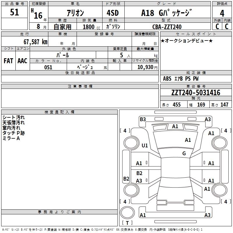 TOYOTA ALLION - лот 51
