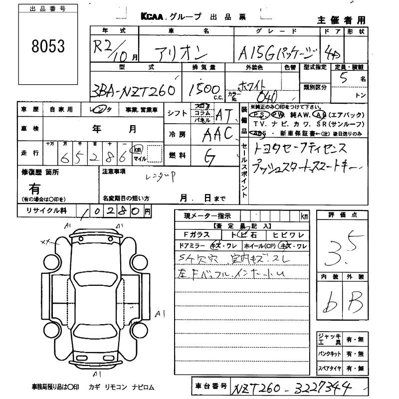 TOYOTA ALLION - лот 8053