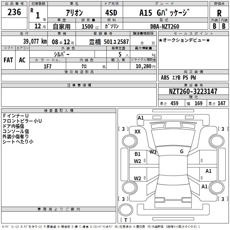 TOYOTA ALLION - лот 236