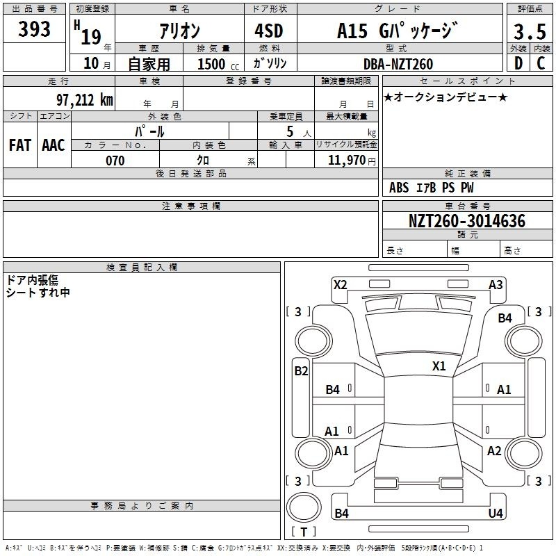 TOYOTA ALLION - лот 393