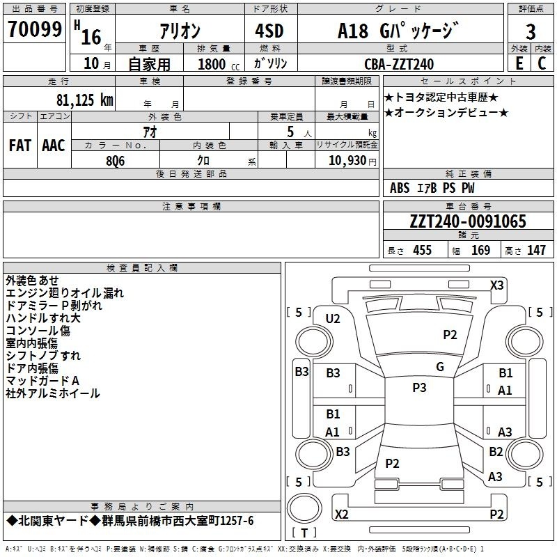TOYOTA ALLION - лот 70099