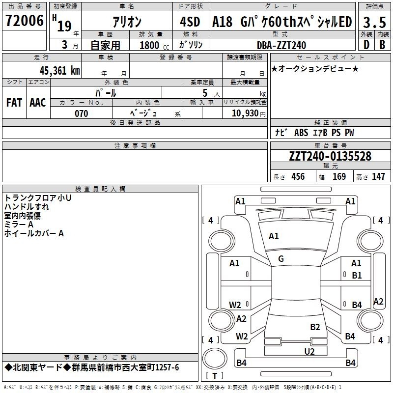 TOYOTA ALLION - лот 72006