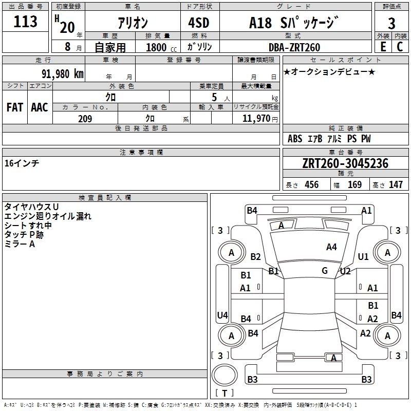 TOYOTA ALLION - лот 113