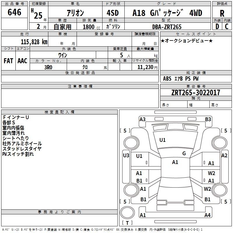 TOYOTA ALLION - лот 646