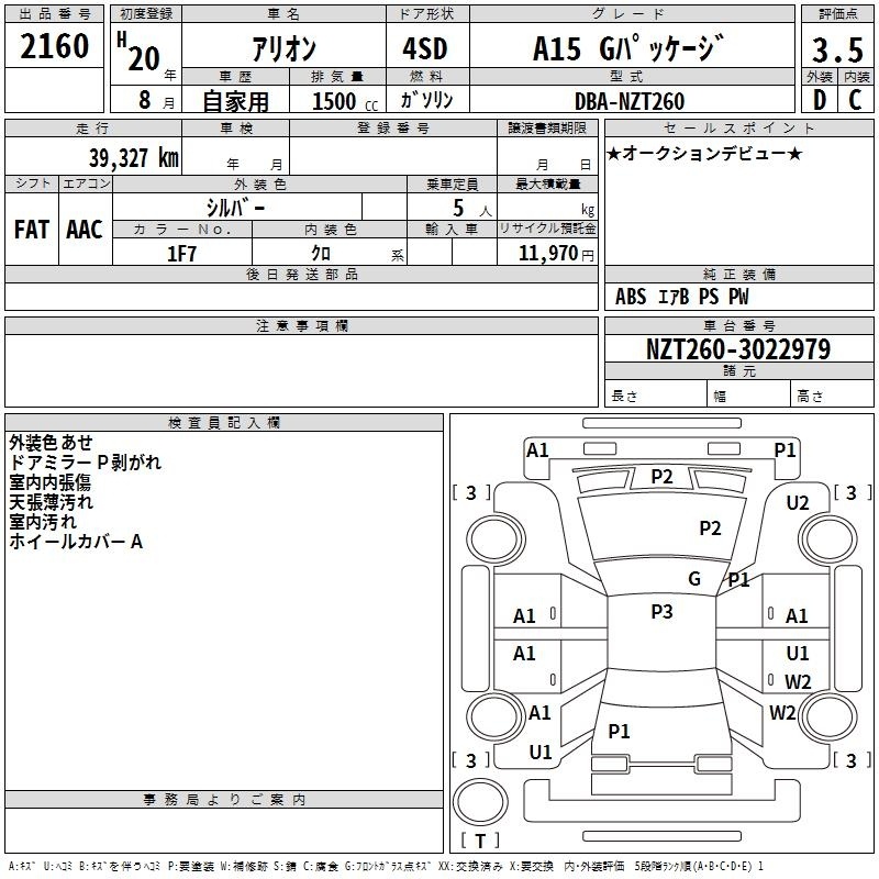 TOYOTA ALLION - лот 2160