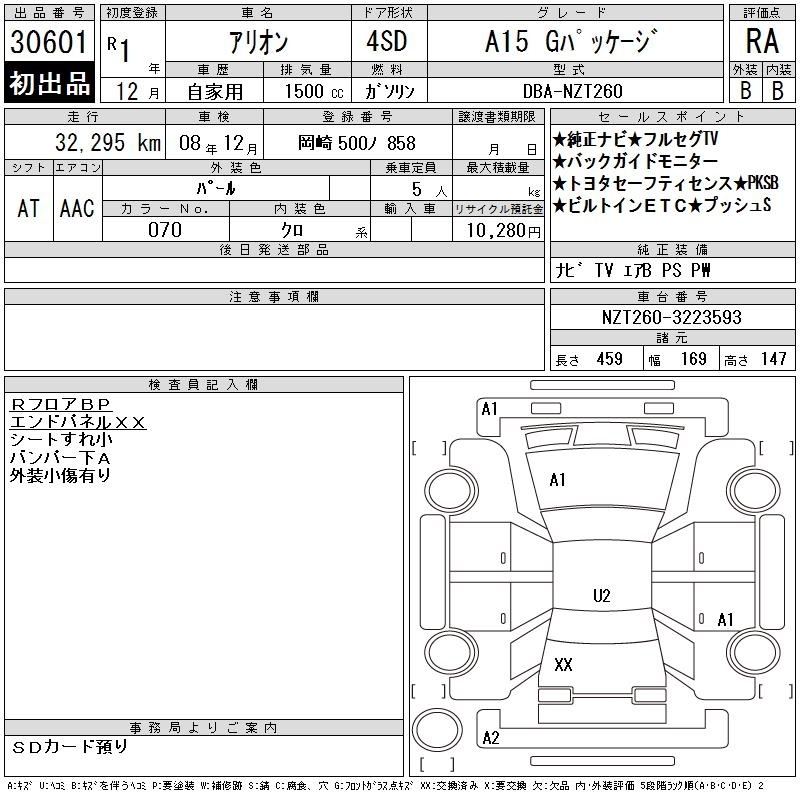 TOYOTA ALLION - лот 30601