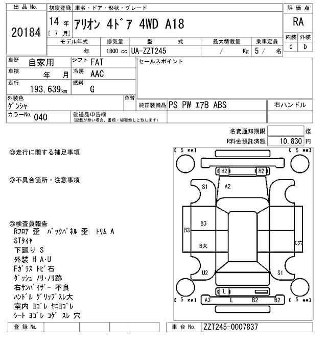 TOYOTA ALLION - лот 20184