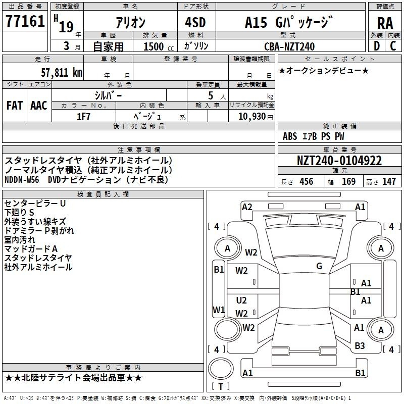 TOYOTA ALLION - лот 77161