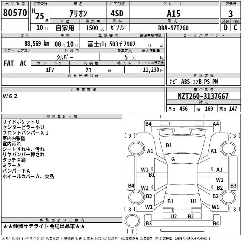 TOYOTA ALLION - лот 80570