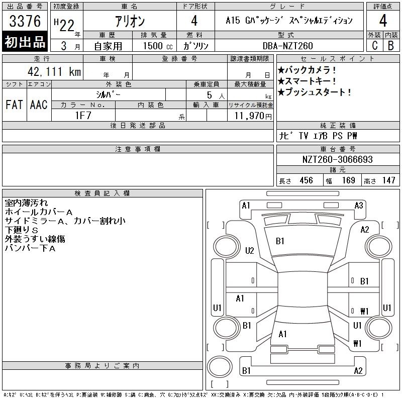 TOYOTA ALLION - лот 3376