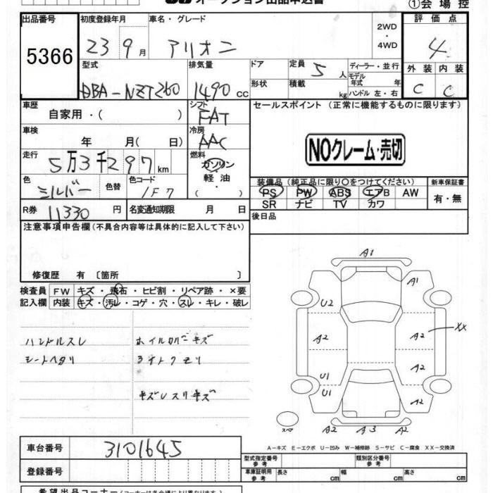 TOYOTA ALLION - лот 5366