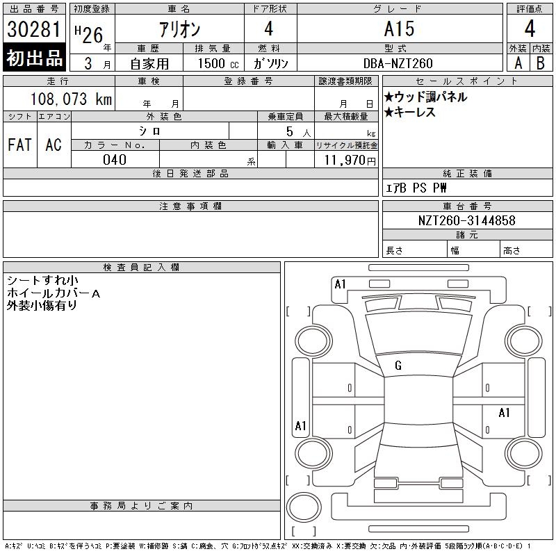 TOYOTA ALLION - лот 30281