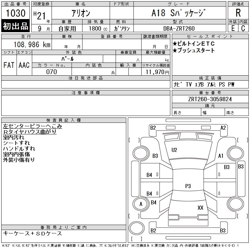 TOYOTA ALLION - лот 1030