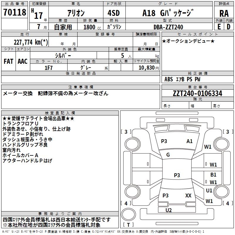 TOYOTA ALLION - лот 70118