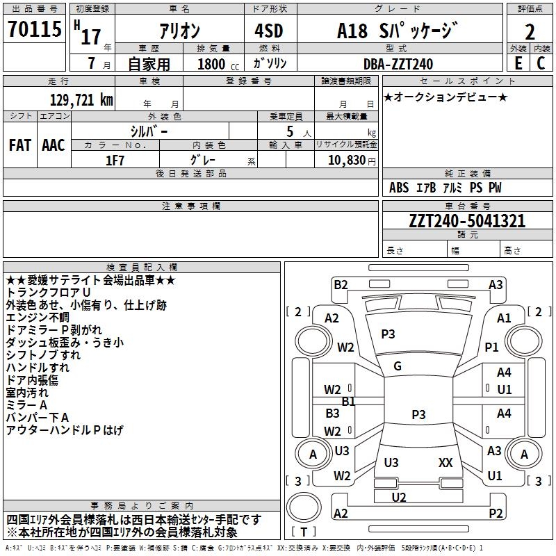 TOYOTA ALLION - лот 70115