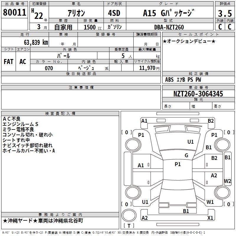 TOYOTA ALLION - лот 80011