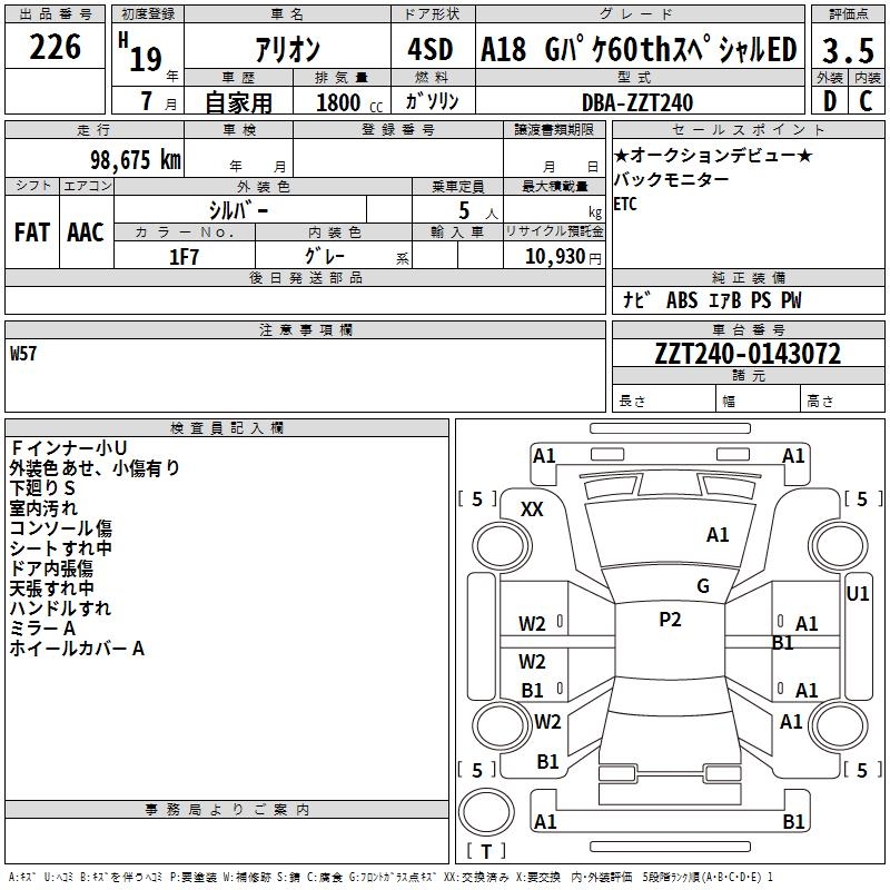 TOYOTA ALLION - лот 226