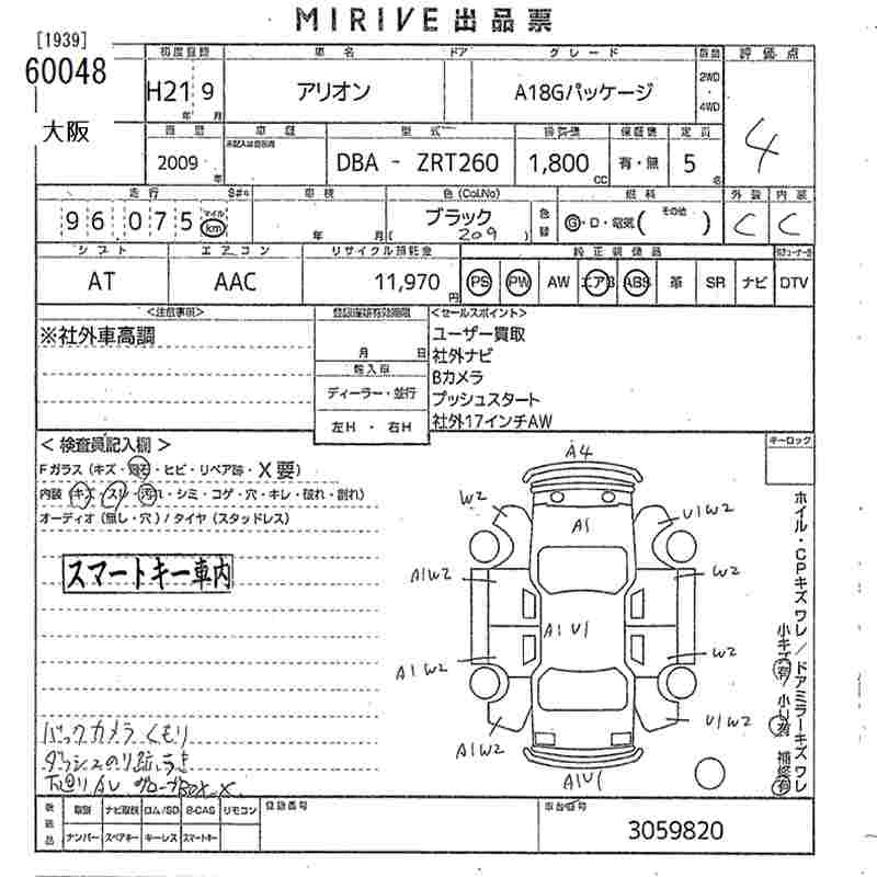 TOYOTA ALLION - лот 60048