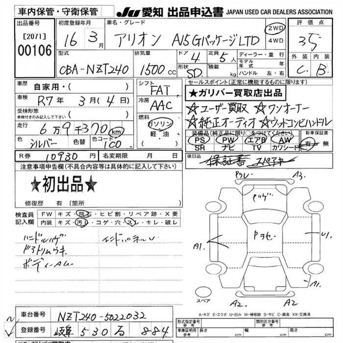 TOYOTA ALLION - лот 106