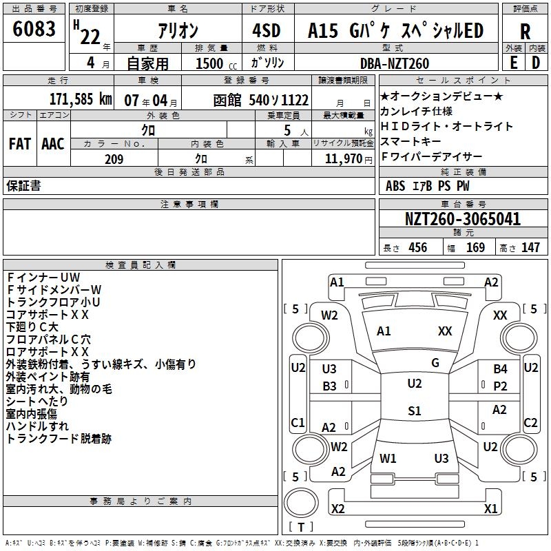 TOYOTA ALLION A15 G комплектация специальный ED - лот 6083