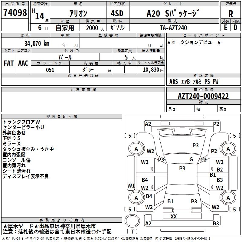 TOYOTA ALLION - лот 74098