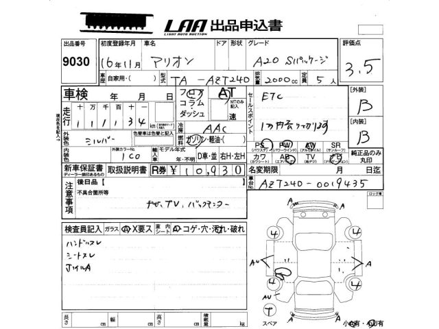 TOYOTA ALLION - лот 9030